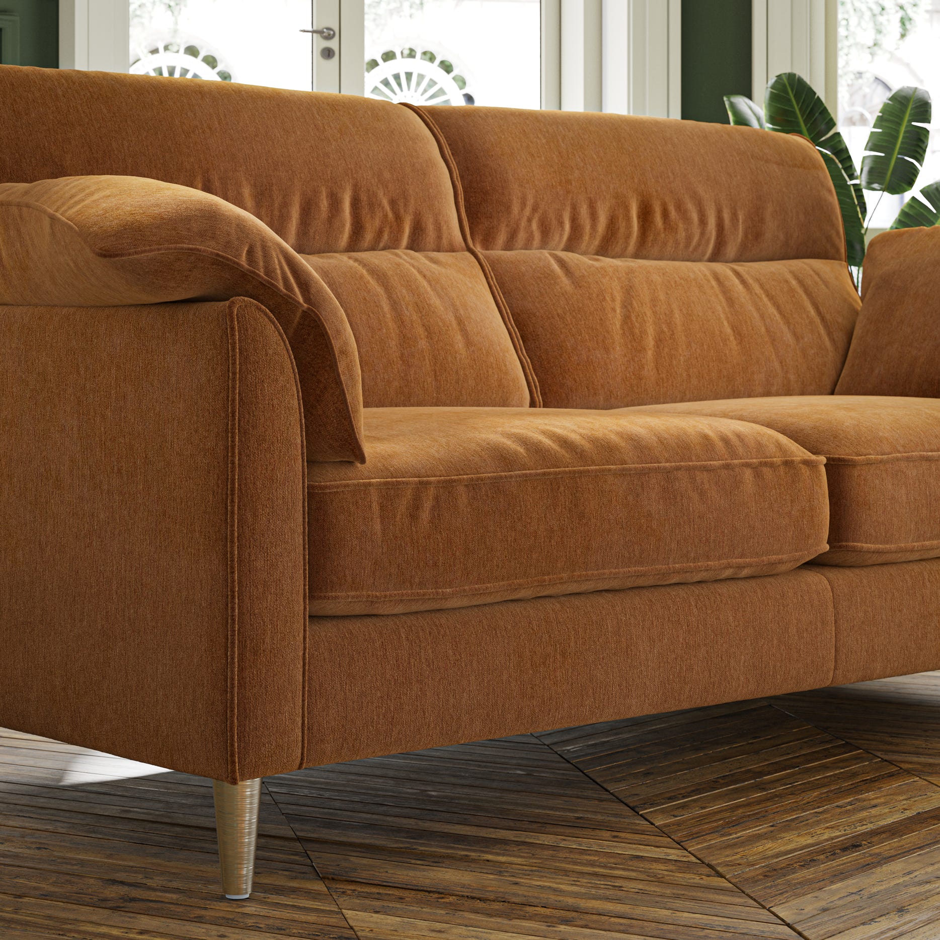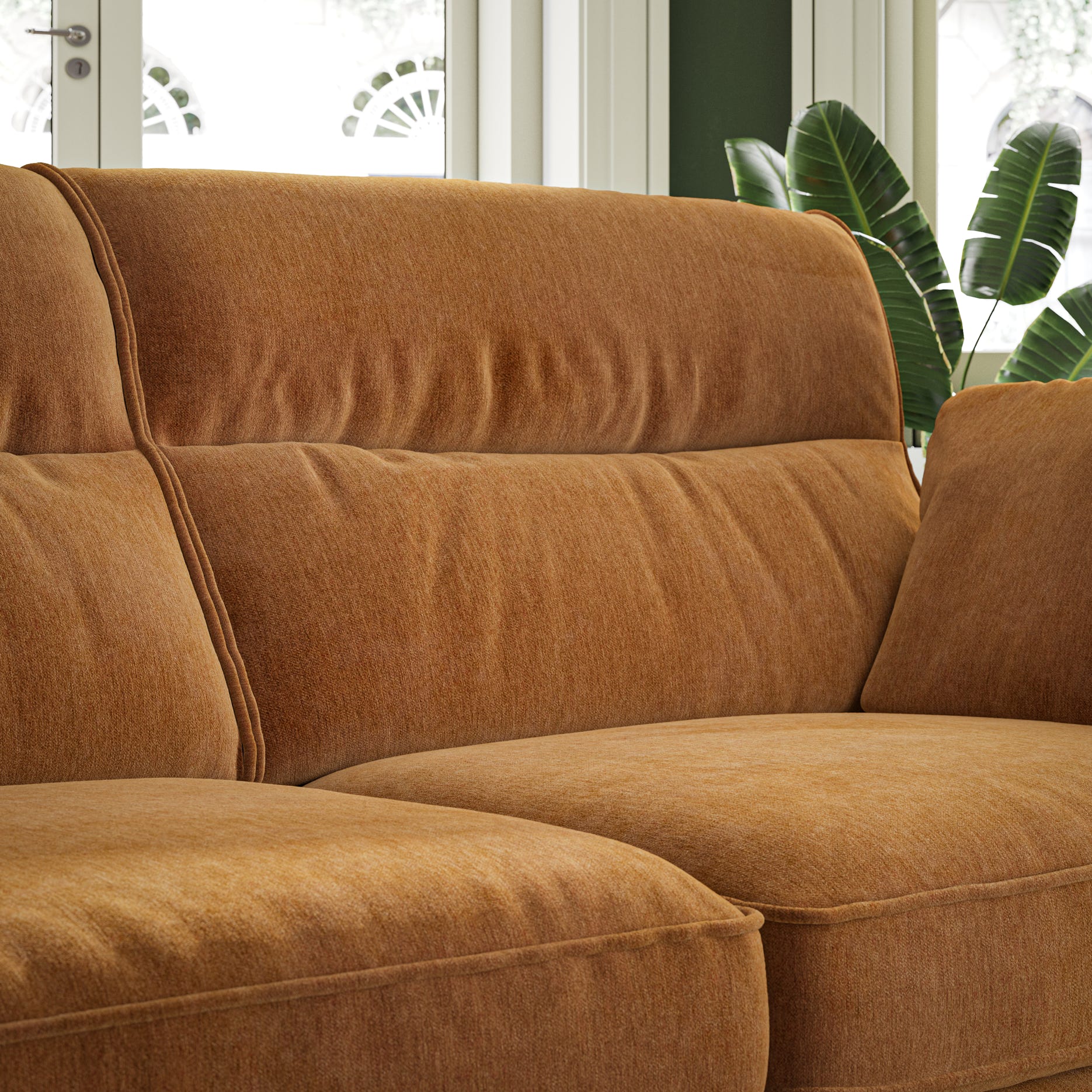 1.BACK CUSHIONS ARE 100% FIBRE AND ARM CUSHIONS ARE 100% DUCK FEATHER, SUSTAIABLY SOURCED.